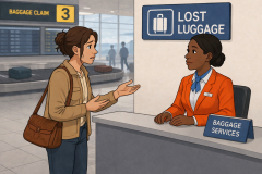 Lost Luggage Haley: Excuse me, my suitcase didn’t show up on the carousel.Jessica: ’m sorry about that. Let me look it up in the system. Do you have your baggage claim tag? Haley: Yes, here it is.Jessica: Thank you. Just give me a moment while I check where