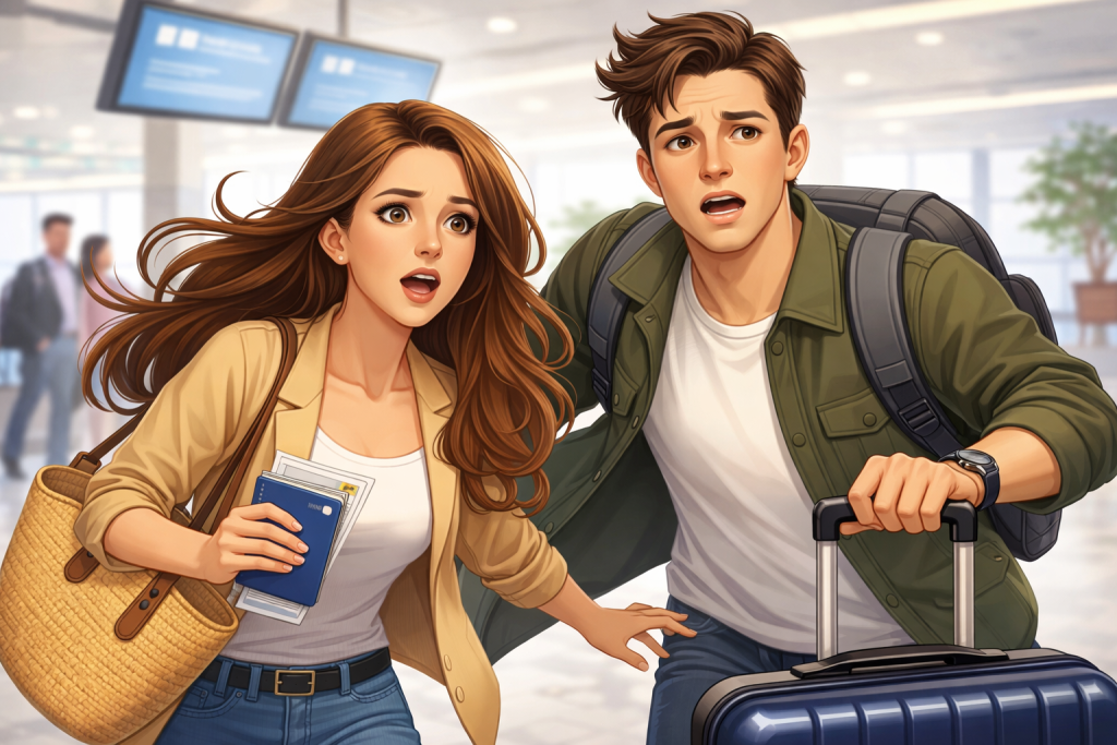 Wife: Next time we’re getting to the airport at least two hours early.